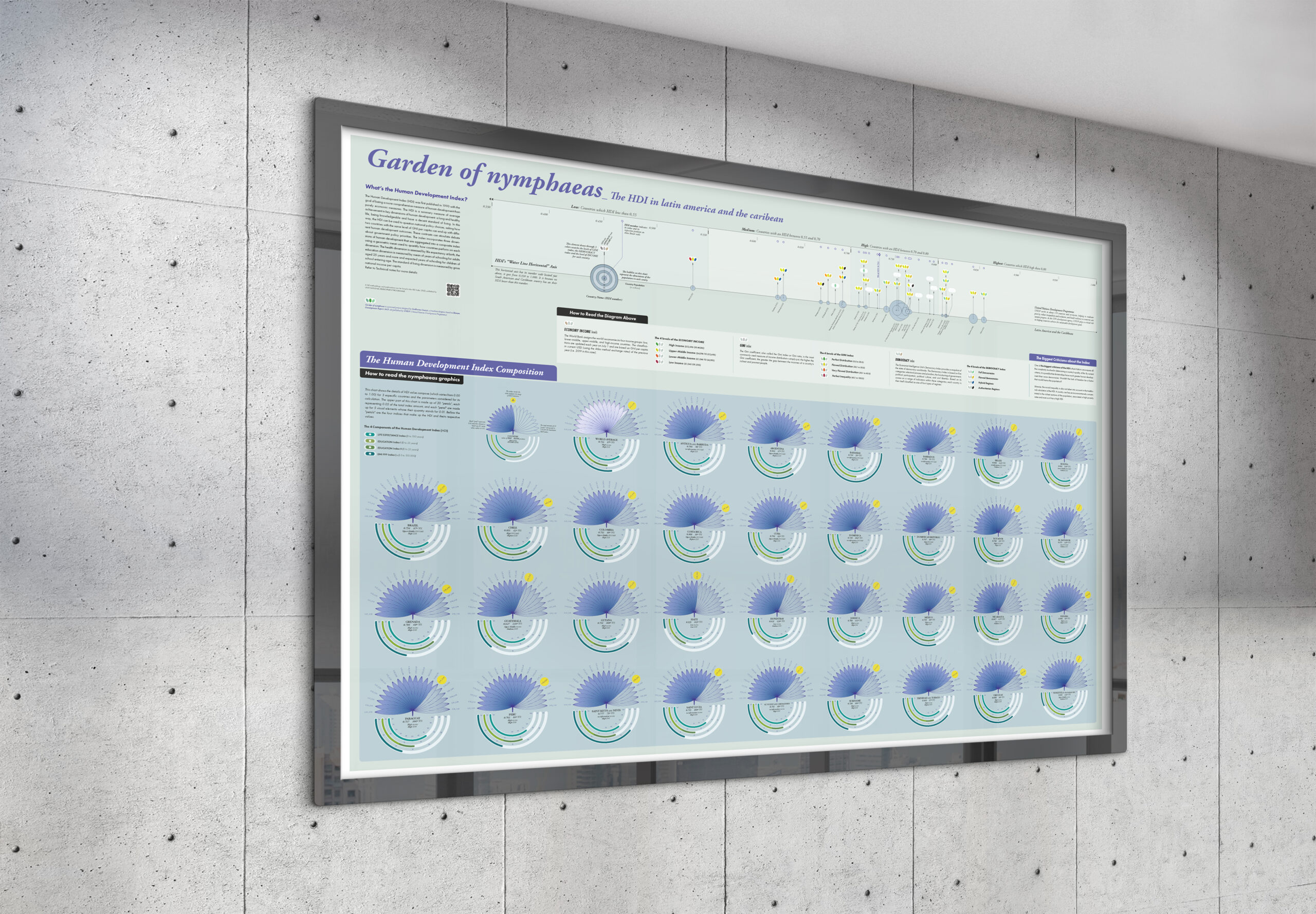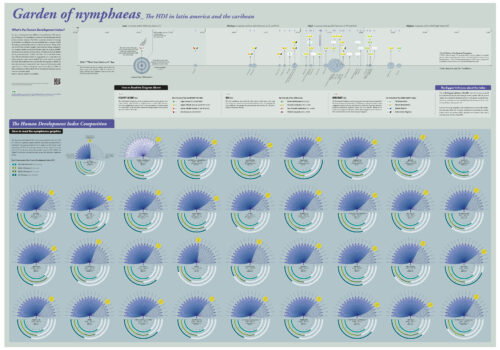 O diagrama Garden of nymphaeas II_The HDI in latin américa and the caribean apresenta através de pequenos múltiplos a composição do Índice de Desenvolvimento Humano (IDH) para os países da América Latina e Caribe. E tenta explicitar a maior crítica dedicada ao cálculo do IDH, que consiste na incapacidade desse abranger a complexa determinação da qualidade de vida de um país. Pelos critérios atuais, a desigualdade social e os tipos de regimes governamentais não são levados em consideração.