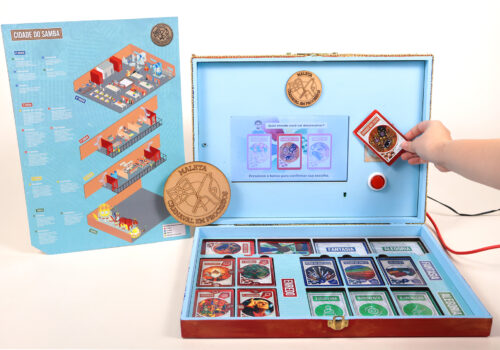 A “Maleta Carnaval em Processo" é um museu itinerante que explora o processo de construção de um desfile de escola de samba. O projeto busca a aproximação junto à comunidade com a valorização do patrimônio cultural imaterial, dando ênfase aos depoimentos de trabalhadores e ao processo criativo. Combinando componentes físicos e digitais, usa narrativas, áudio e cartões RFID temáticos, além de um suporte ilustrado que representa o barracão da Cidade do Samba e seus diversos profissionais.