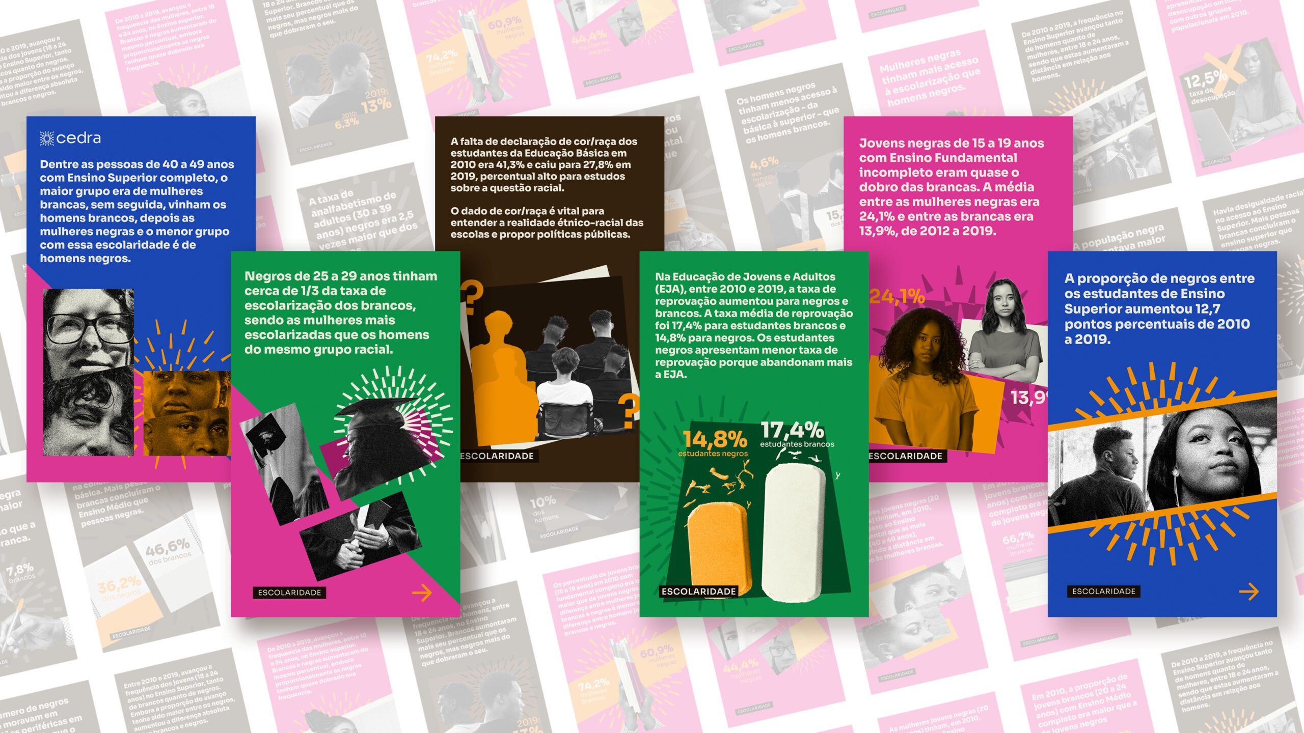 O CEDRA é uma instituição independente dedicada a democratizar o acesso a dados sobre desigualdades raciais no Brasil. Criamos uma plataforma com cards interativos ilustrados e filtros temáticos, que tangibilizam as disparidades entre negros e brancos em áreas como Escolaridade, Renda e Saúde. Para especialistas, disponibilizamos tabelas acessíveis para download e análise. A plataforma já alcança mais de 6 mil usuários em diversos países.