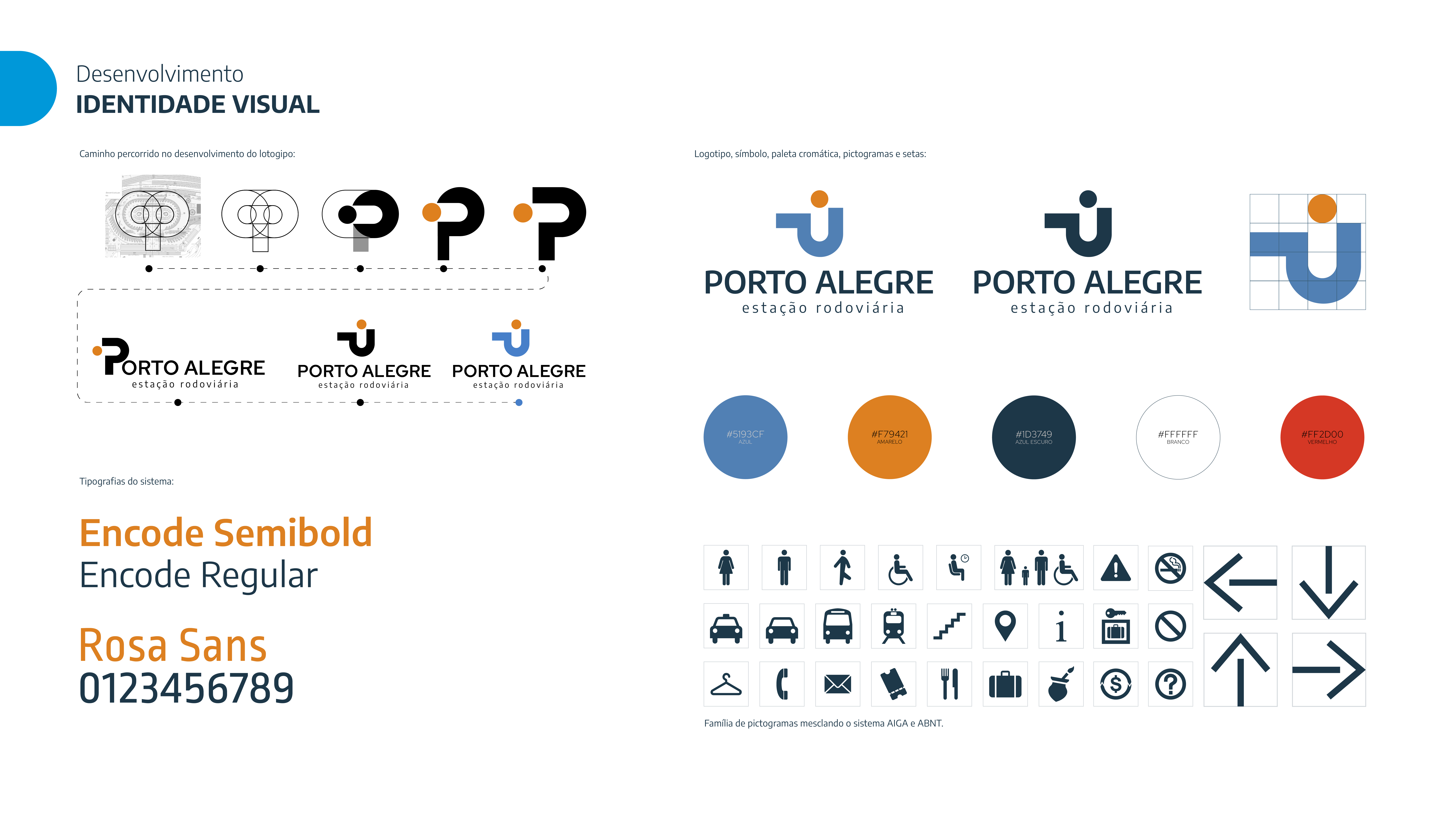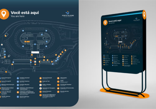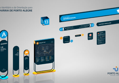 O trabalho de Conclusão de Curso em Design de Produto na UFRGS da aluna Isabela Contursi Arisi, prevê o projeto de identidade visual, estratégia e sistema de sinalização para a rodoviária da cidade de Porto Alegre. Com base na metodologia de Scherer (2017), visa orientar o público com clareza, conforto e conexão. O resultado final é um manual composto pelas diretrizes necessárias para implementação. Durante o processo foi tido como conceito a frase “A entrada da cidade conectada às pessoas”.