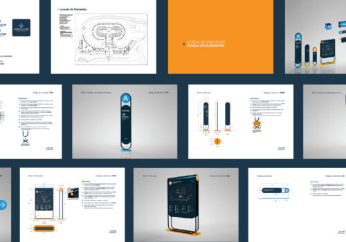 Um caderno executivo composto das diretrizes de aplicação do sistema de sinalização, desde a identidade visual, locações em planta baixa dos elementos e detalhamento técnico dos mesmo. O resultado foi obtido por meio de um documento chamado de Cardeno Executivo que trás em si todas as diretrizes necessárias para aplicação desse sistema no espaço determinado, a rodoviária de Porto Alegre. O caderno inicia apresentando a identidade visual desenvolvida para a rodoviária que teve como inspiração o rio da cidade e o famoso pôr-do-sol, junto do restante da comunicação gráfica. Segue com a planilha quantitativa identificando todos os elementos, seus conetúdos e quantidades necessárias para contemplar o espaço, a planta baixa alocando cada um dos elementos estrategicamente e por fim o detalhamento de cada elemento com suas especificações técnicas para produção junto das simulações em 3D de cada.