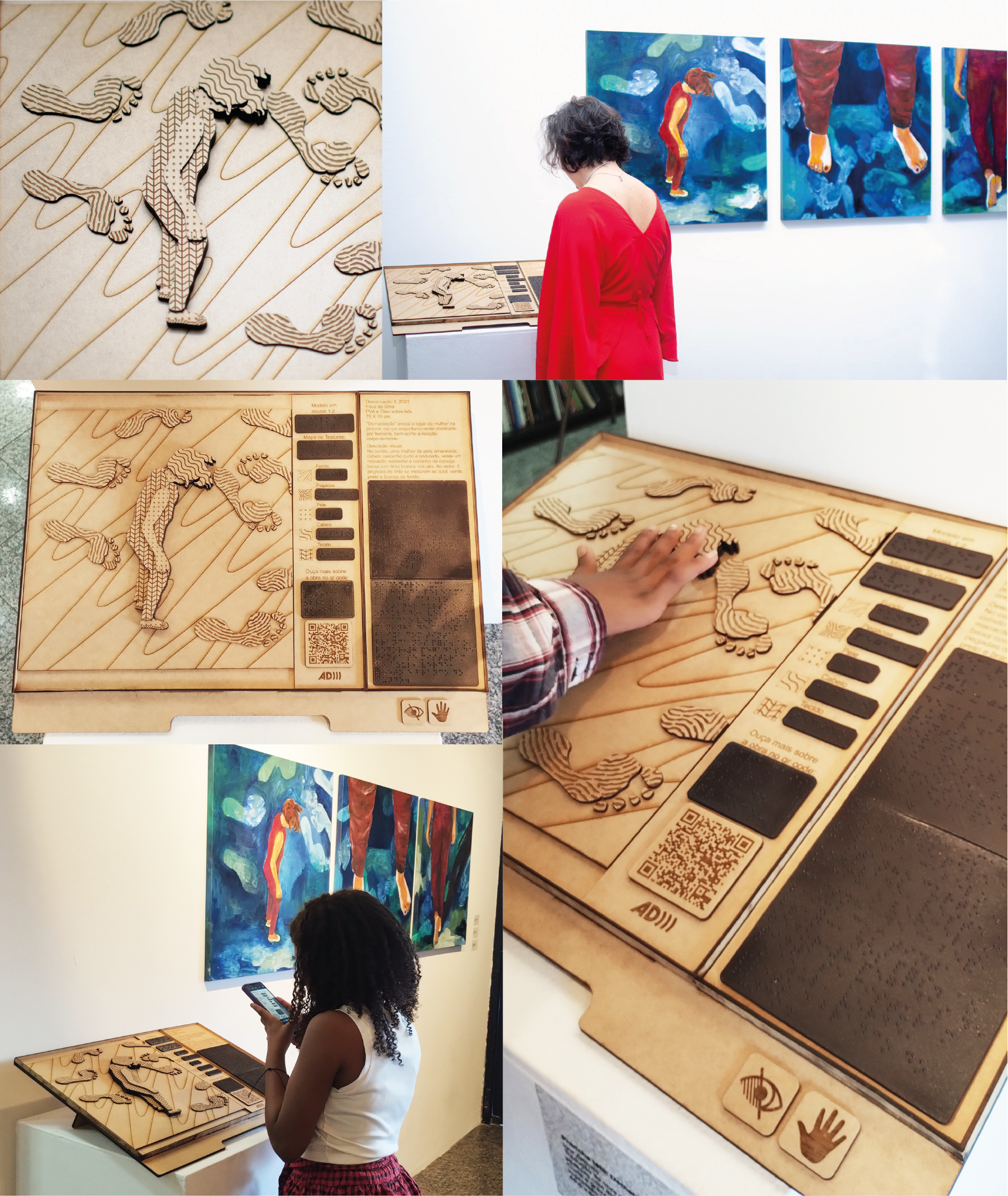 O sistema unificado de tradução tátil possibilitou a compreensão sensorial tátil-auditiva da obra por pessoas com deficiência visual e videntes, promovendo inclusão e autonomia em exposições de artes visuais. Derivado de experimento acadêmico (TCC), validou técnicas de tradução visual com usuários cegos e em espaços expositivos e ampliou a discussão sobre acessibilidade comunicacional de imagem para outros sentidos além da visão em contextos de poucos recursos.